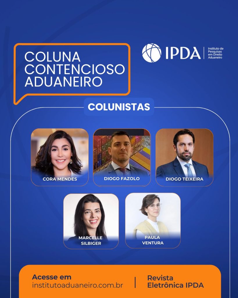 Diogo Bianchi Fazolo. Mestre em Direito pela Universidade Católica de Brasília (UCB), Diretor de Pesquisa do Instituto de Pesquisas em Direito Aduaneiro (IDPA), membro da Academia Latino-americana de Direito Aduaneiro (ALDA), autor do livro Infrações Aduaneiras à luz do Direito Aduaneiro Internacional (Caput Libris, 2024) e advogado.